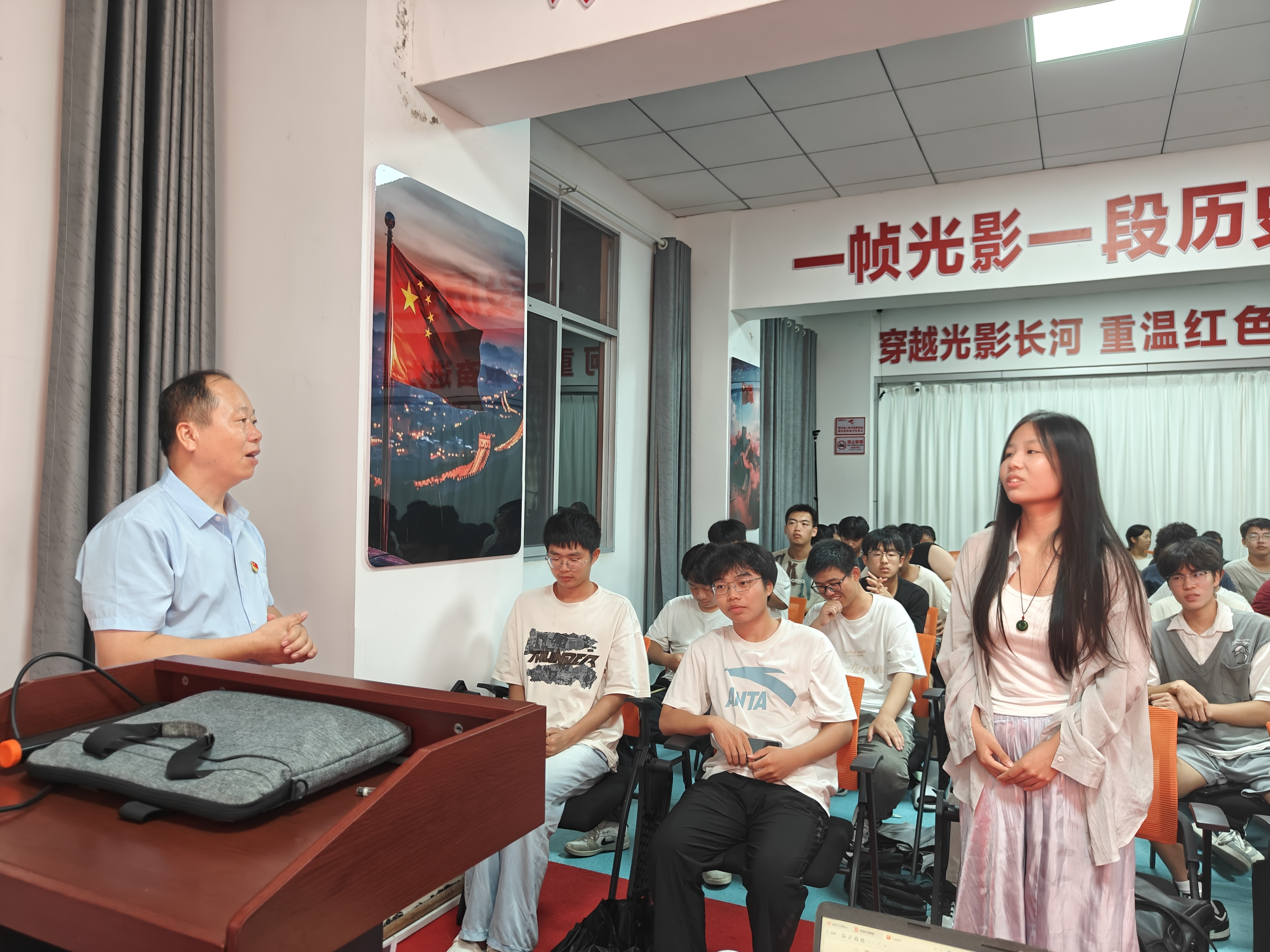 宣讲中,胡光明围绕“走进国家防务、国防主要力量、空军作战纪实、参战军人心路、世界军事热点、加强国防教育”六个维度展开,用亲身经历和鲜活案例搭建起国防教育的桥梁。胡光明通过“典型引路、榜样同行”的方式,让国防教育从“一时触动”转化为“持续浸润”,真正扎根校园、融入师生血脉,为新时代青少年筑牢精神长城。