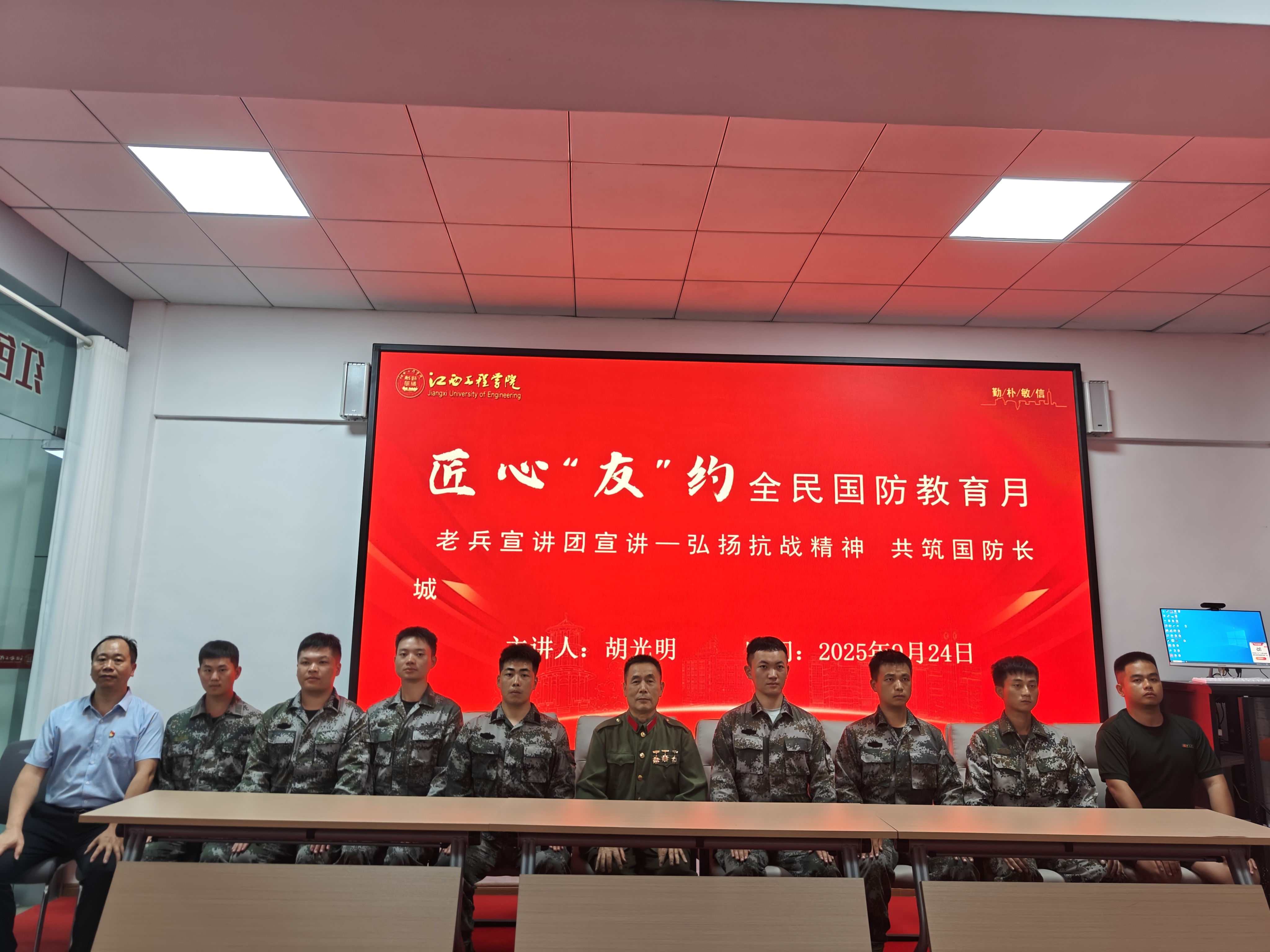 “红色・国防”课堂是江西工程学院思政育人的特色品牌,依托学校“匠心‘友’约”平台面向师生开展。据江西工程学院武装部郭丁元老师介绍,为让国防教育更精准、更生动,学校一方面定期邀请“老兵宣讲团”成员,根据不同师生群体的需求定制“宣讲菜单”;另一方面组织校内退伍大学生分享参军经历,用同龄人听得懂、乐于听的语言,让红色教育在校园里“活”起来、“亮”起来,引导青年师生厚植爱国情怀。