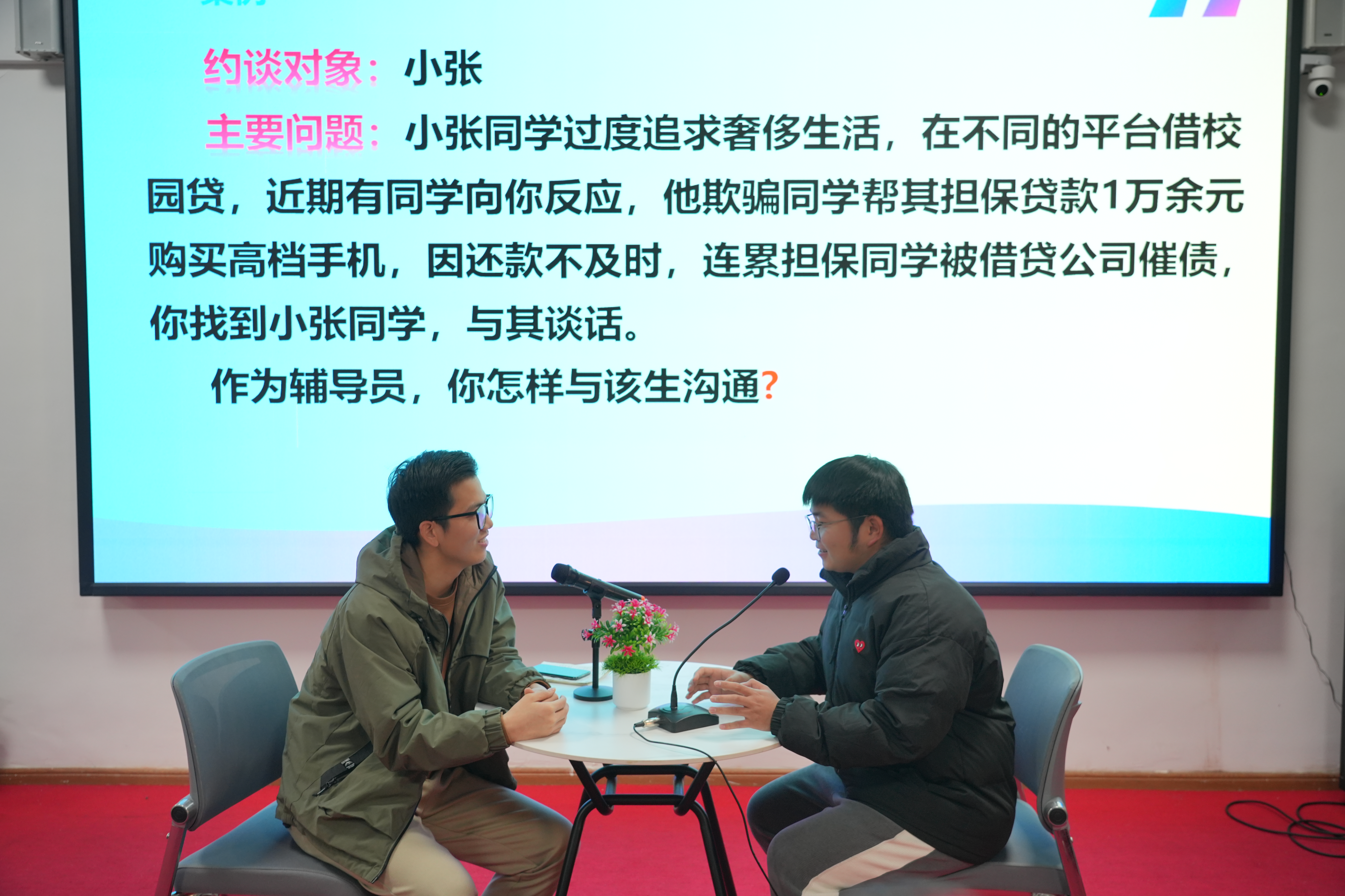 谈心谈话环节中,选手们提前抽题,遵循“人题匹配、同院规避”原则与学生模拟沟通,以真诚的态度、专业的技巧化解学生困惑,谈话后的总结反思与评委问答,进一步彰显了辅导员对学生成长规律的把握与教育引导能力。