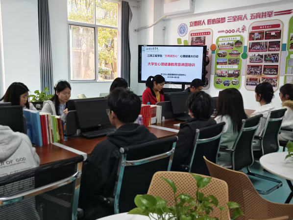为贯彻落实“健康第一”教育理念,扎实推进心理健康教育工作走深走实,确保大学生心理健康教育宣讲团工作规范有序开展,2026年4月1日下午,江西工程学院在天工校区一站式九栋辅导员工作室举办大学生心理健康教育宣讲团培训会,校学工处处长陈居权出席会议并讲话,培训会由心理健康教育与咨询中心熊小红老师主持,心理健康教育与咨询中心全体老师和宣讲团全体成员参会。